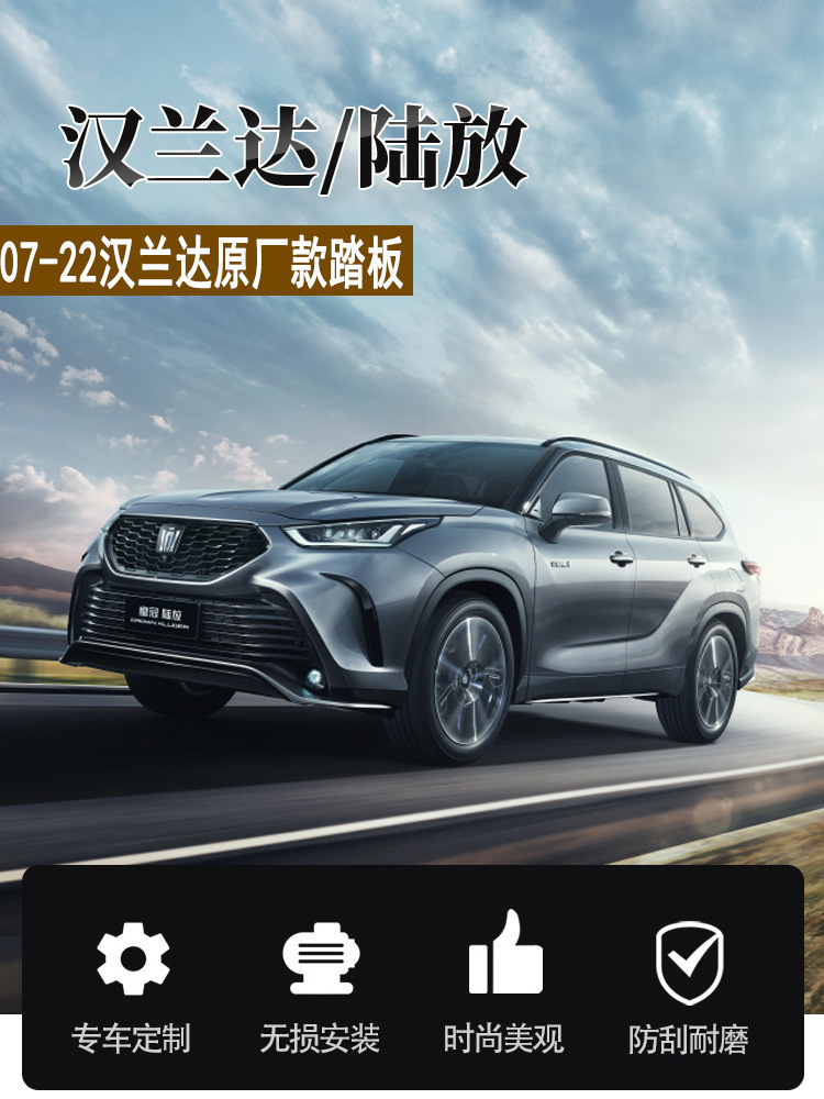 Upgrade your SUV with premium aluminum running boards. Designed for Highlander and Crown Kluger, these side steps offer durable support and non-slip safety.