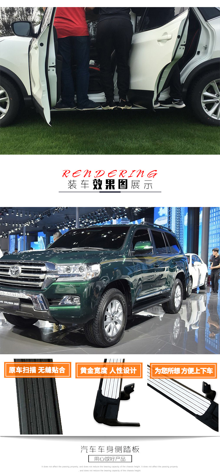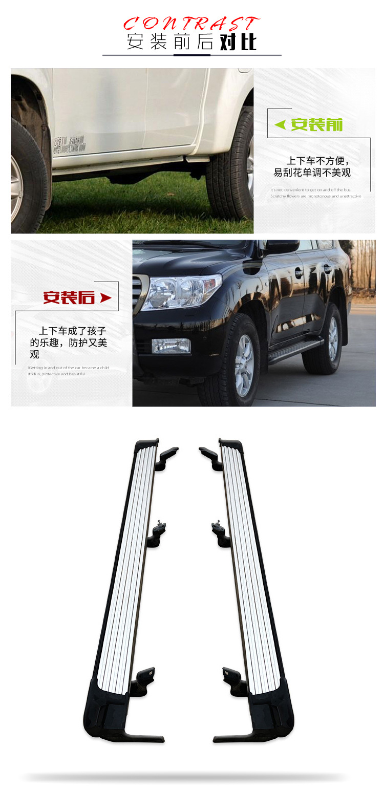 Tags: aluminum foot pedals, LC200 exterior accessories, nerf bars, running boards, side steps, step bars, vehicle entry aid