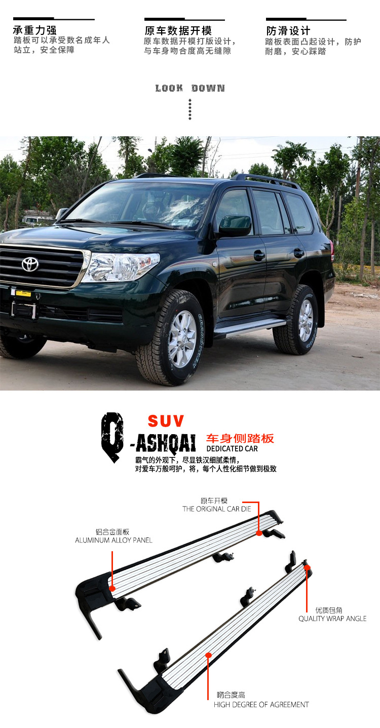 Upgrade your LC200 with durable aluminum running boards. Designed for 2008-2020 models, these side steps offer non-slip safety and robust exterior protection.