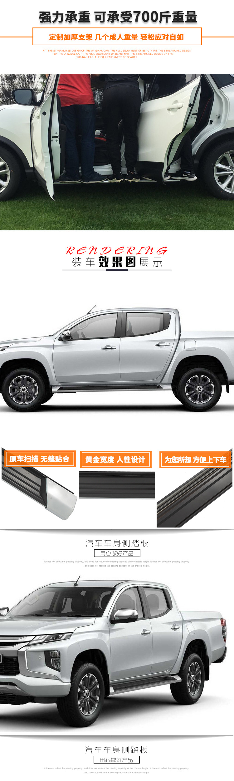 - Precision-engineered side steps specifically designed for the 2019 and newer Mitsubishi L200 Triton pickup models.
