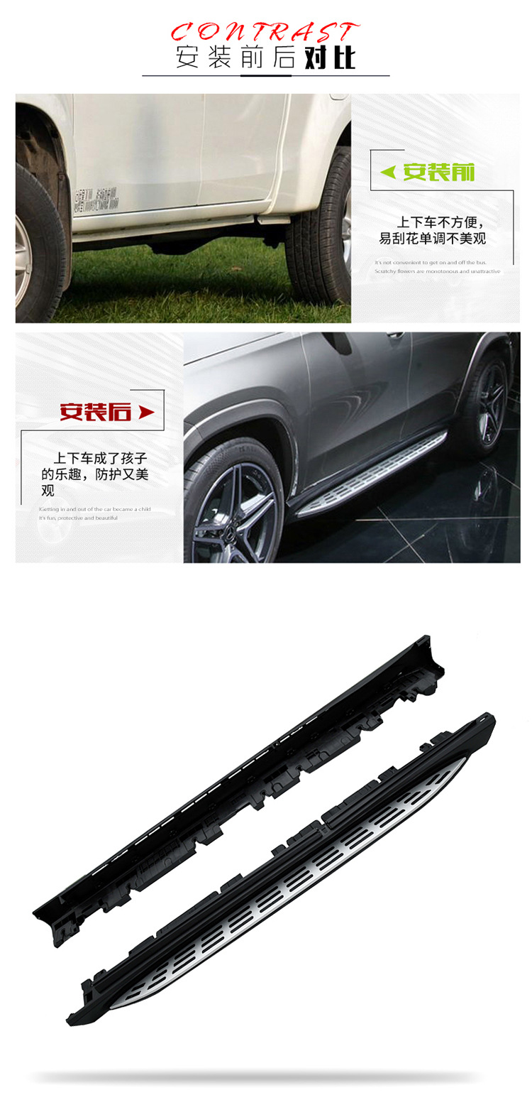 - Integrated anti-slip rubber pads provide a secure footing surface for enhanced safety when entering or exiting the vehicle in all weather conditions.