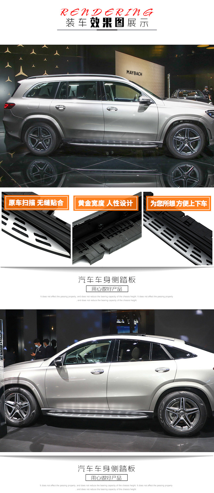 Aluminum Running Boards Side Steps Set Compatible with Mercedes-Benz GLC GLE GLS Class SUV