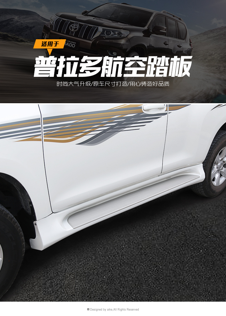 - Custom fit aerodynamic side steps designed specifically for Toyota Land Cruiser Prado 2010-2020 models.