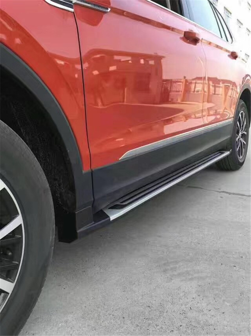 Upgrade your Volkswagen Tiguan L with durable aluminum side steps. These anti-slip running boards provide easy access and extra protection for LWB models.