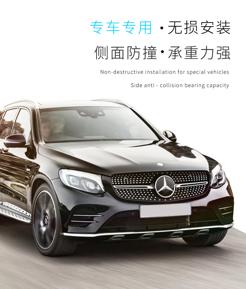 Upgrade your SUV with premium aluminum side steps. Designed for select Mercedes-Benz GLC GLS GLE GLK ML models, offering durable support and easier vehicle access.