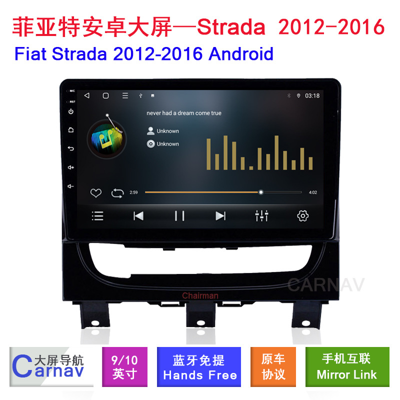 Upgrade your Fiat Strada with this Android car stereo featuring GPS navigation, WiFi, Bluetooth, and backup camera support. Professional infotainment solution.