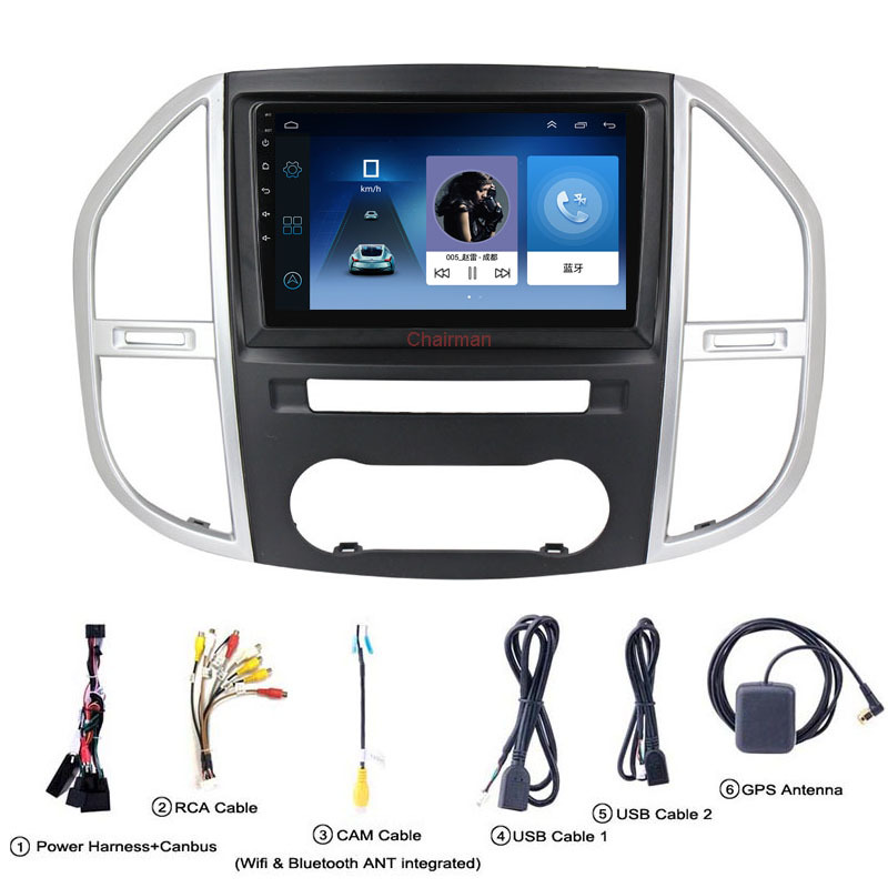 - High-definition Android multimedia system designed specifically for compatible Mercedes-Benz Vito and Viano dashboard integration.