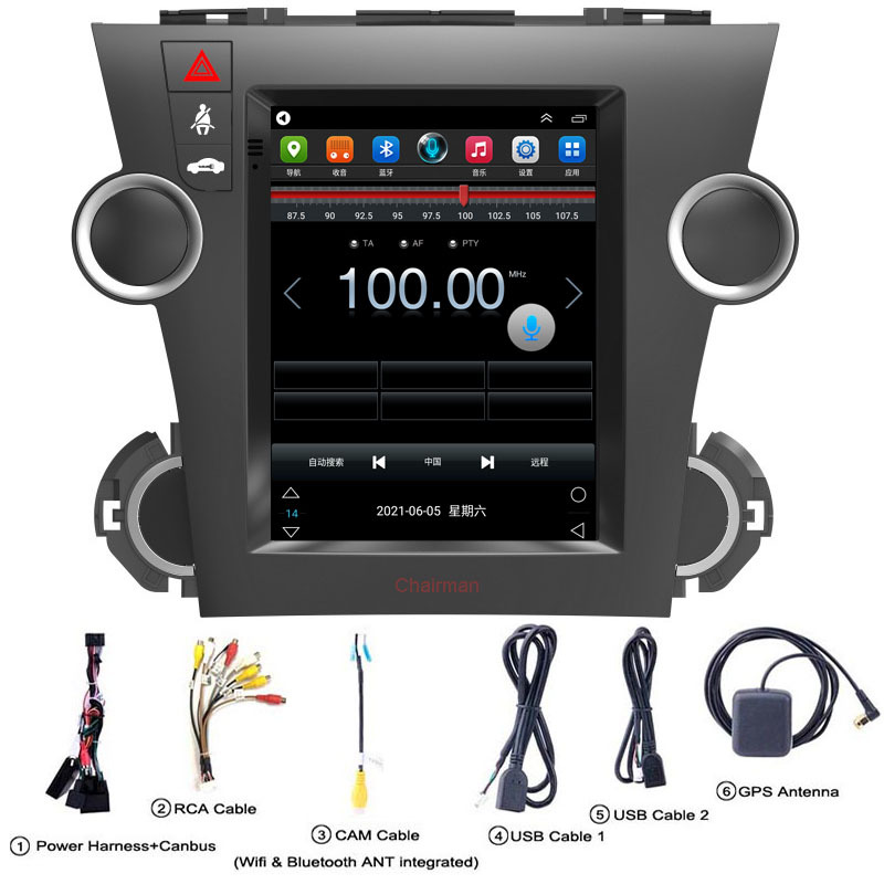 Android Multimedia Navigation System for Toyota Highlander Vertical Screen GPS Autoradio Head Unit