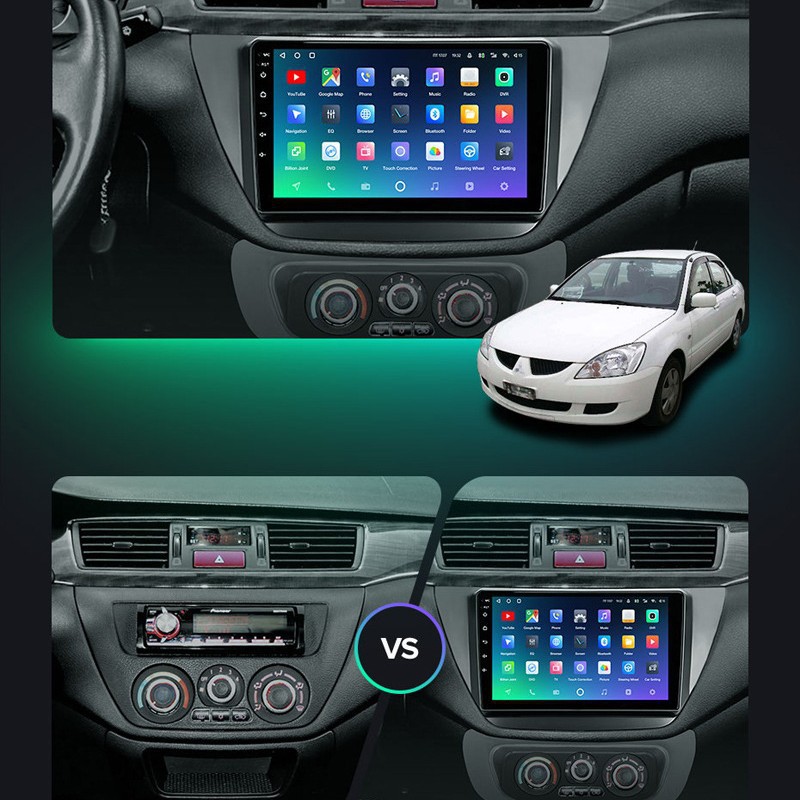 Upgrade your Mitsubishi Lancer IX with a high-definition Android multimedia navigation system. Features GPS tracking, Bluetooth connectivity, and app support.