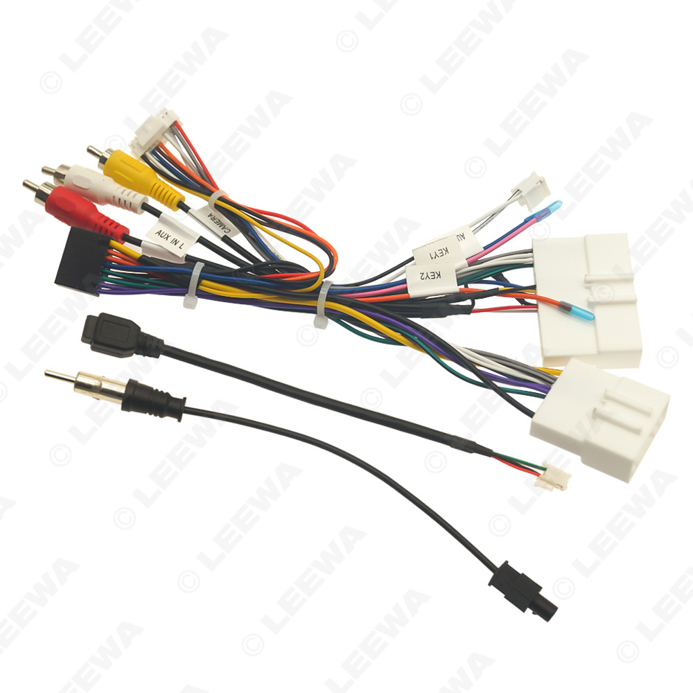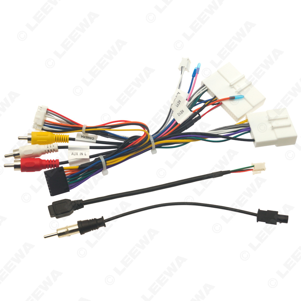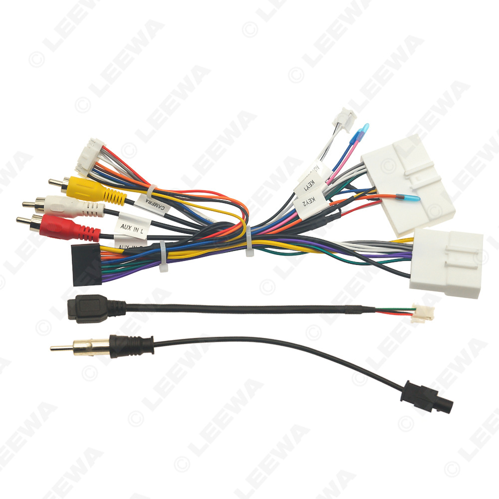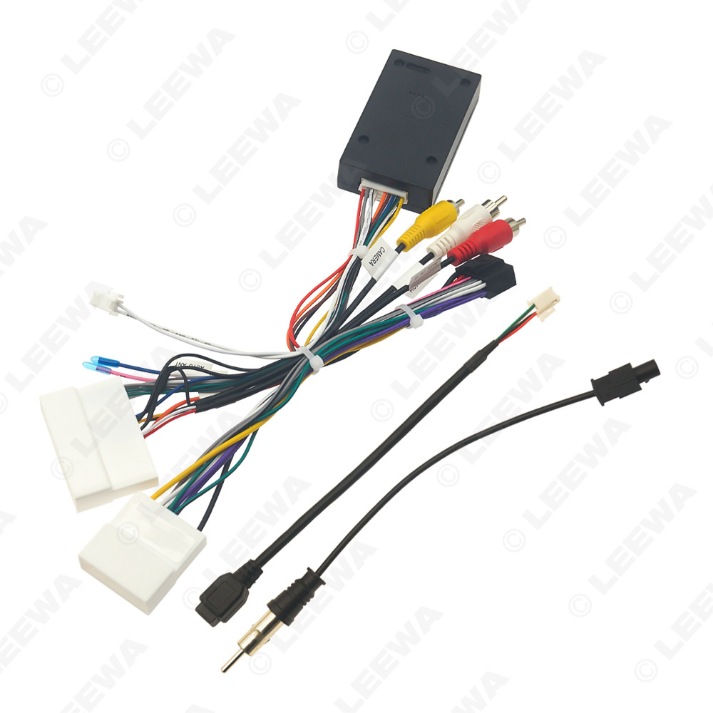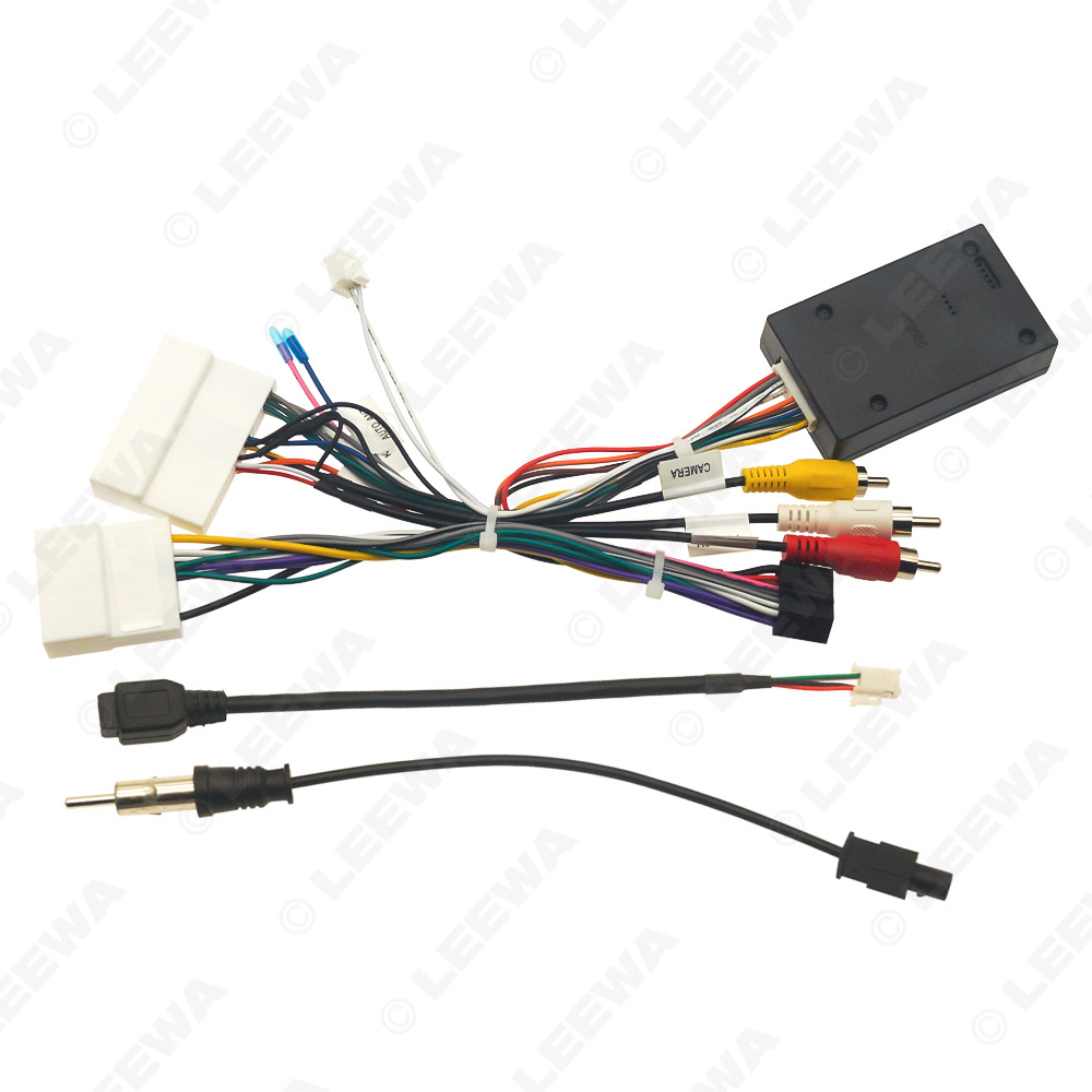 - Complete integrated wiring harness solution designed for modern vehicle head unit installations featuring a CAN-Bus protocol box for system compatibility.
