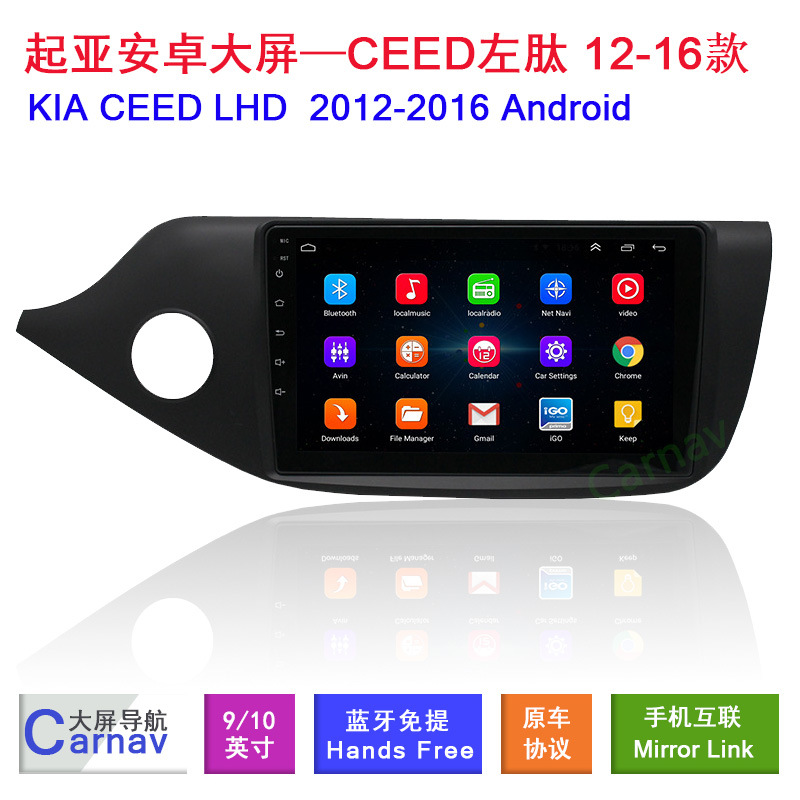 - High-definition touchscreen display specifically designed for Kia Ceed 2014 Left-Hand Drive models providing a modern interior upgrade.