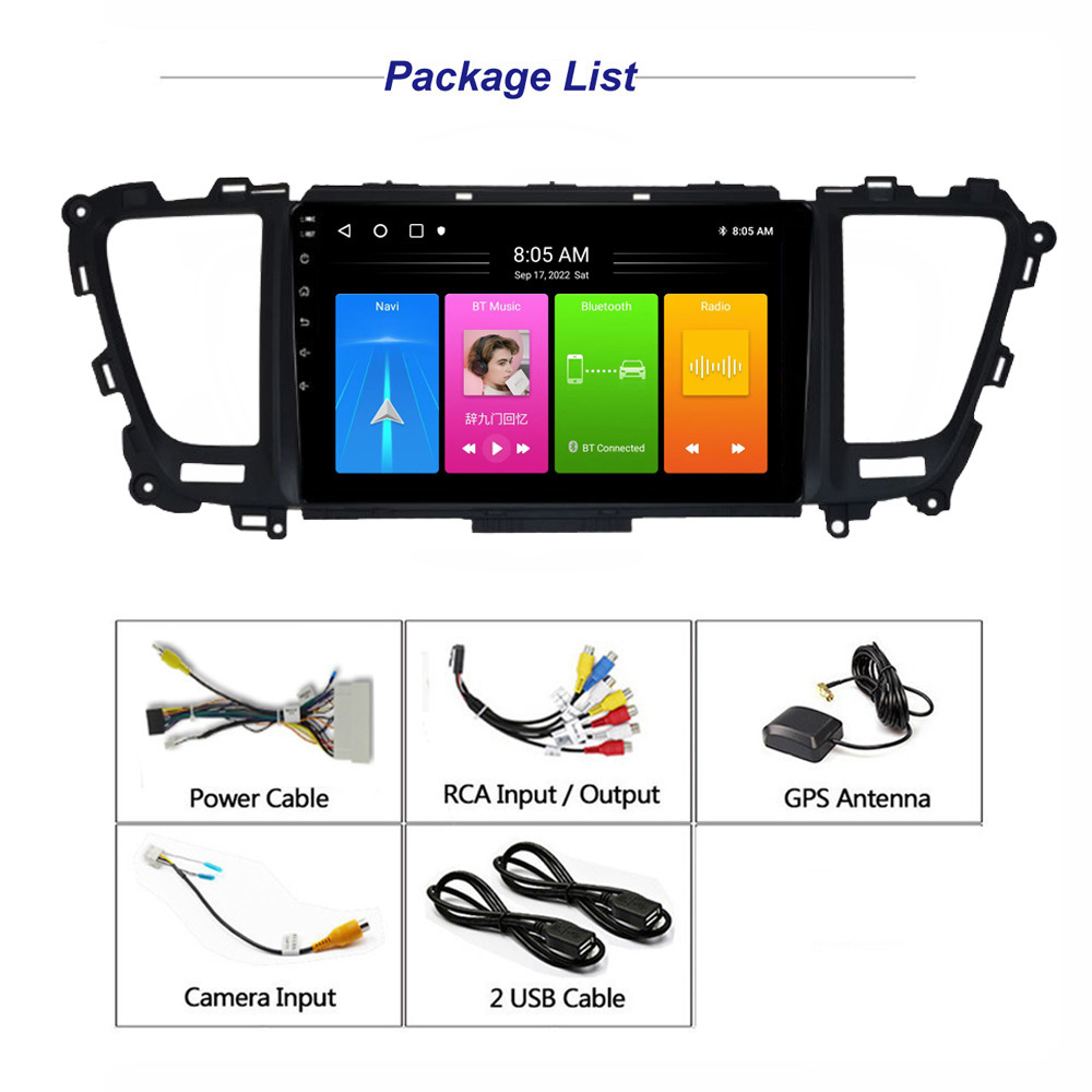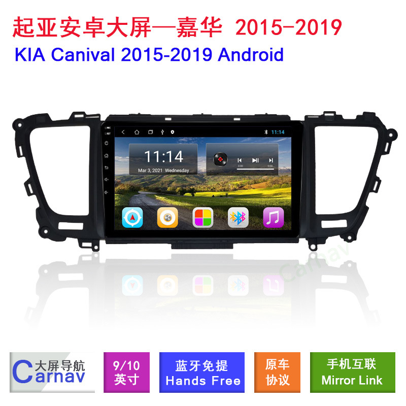 Upgrade your 2015 Kia Carnival with this Android GPS navigation system featuring a large touchscreen, Bluetooth connectivity, and rearview camera support.