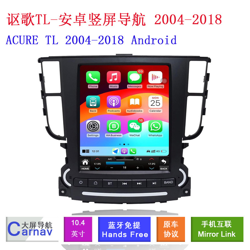 Upgrade your Acura TL 2004-2008 with this Android vertical screen GPS navigation system. Features 360 camera support, multimedia playback, and smart connectivity.