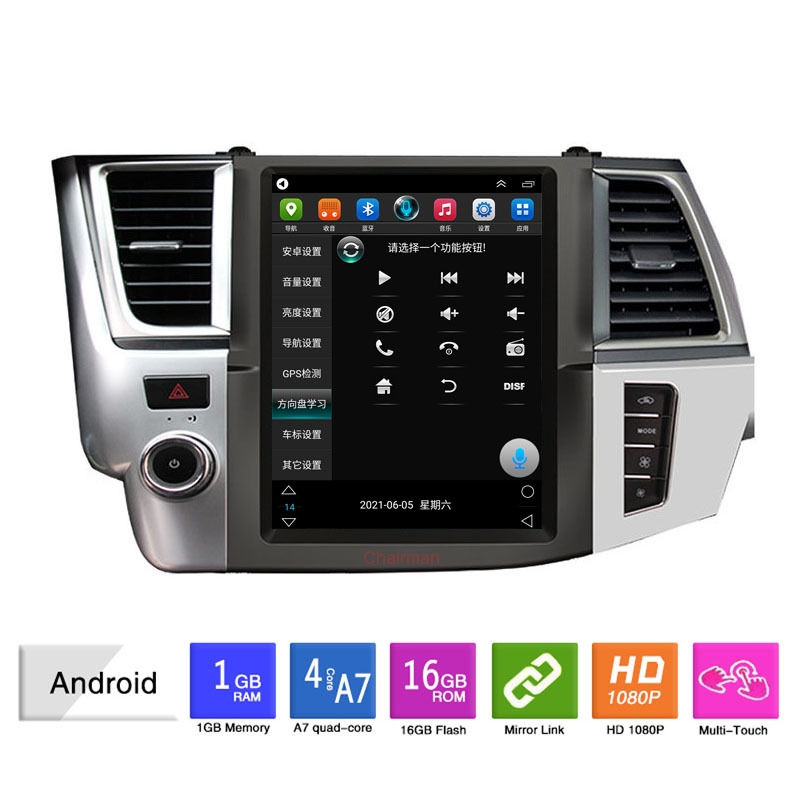 Android Vertical Screen Stereo Head Unit Multimedia Display for Toyota Highlander