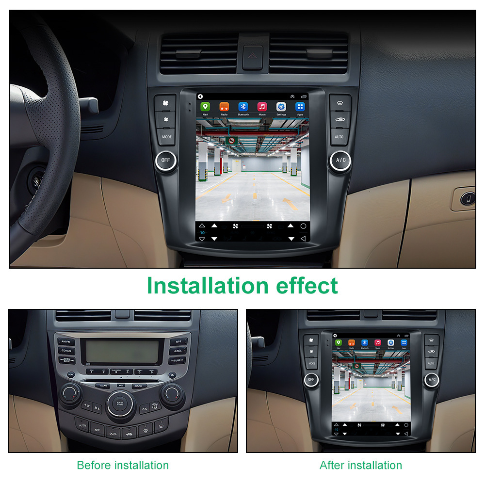 - High-definition Tesla-style vertical touch screen designed specifically for the Honda Accord 7 dashboard layout.