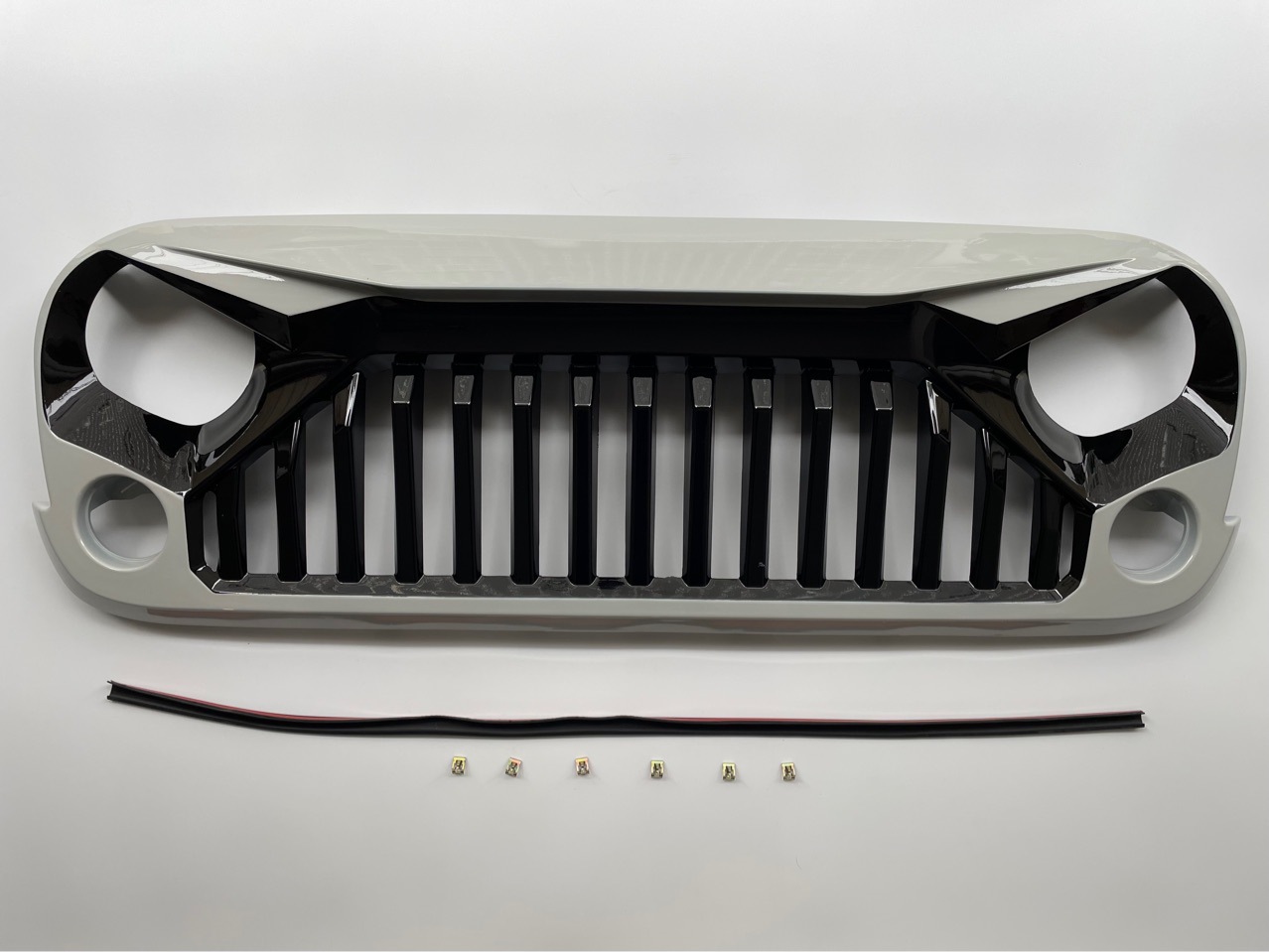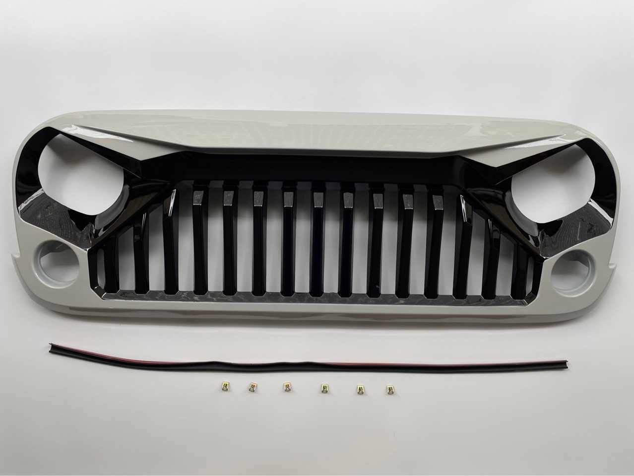Angry Eye Front Grille Matte White & Gloss Black Two-Tone for 2007-2017 Jeep Wrangler JK JKU