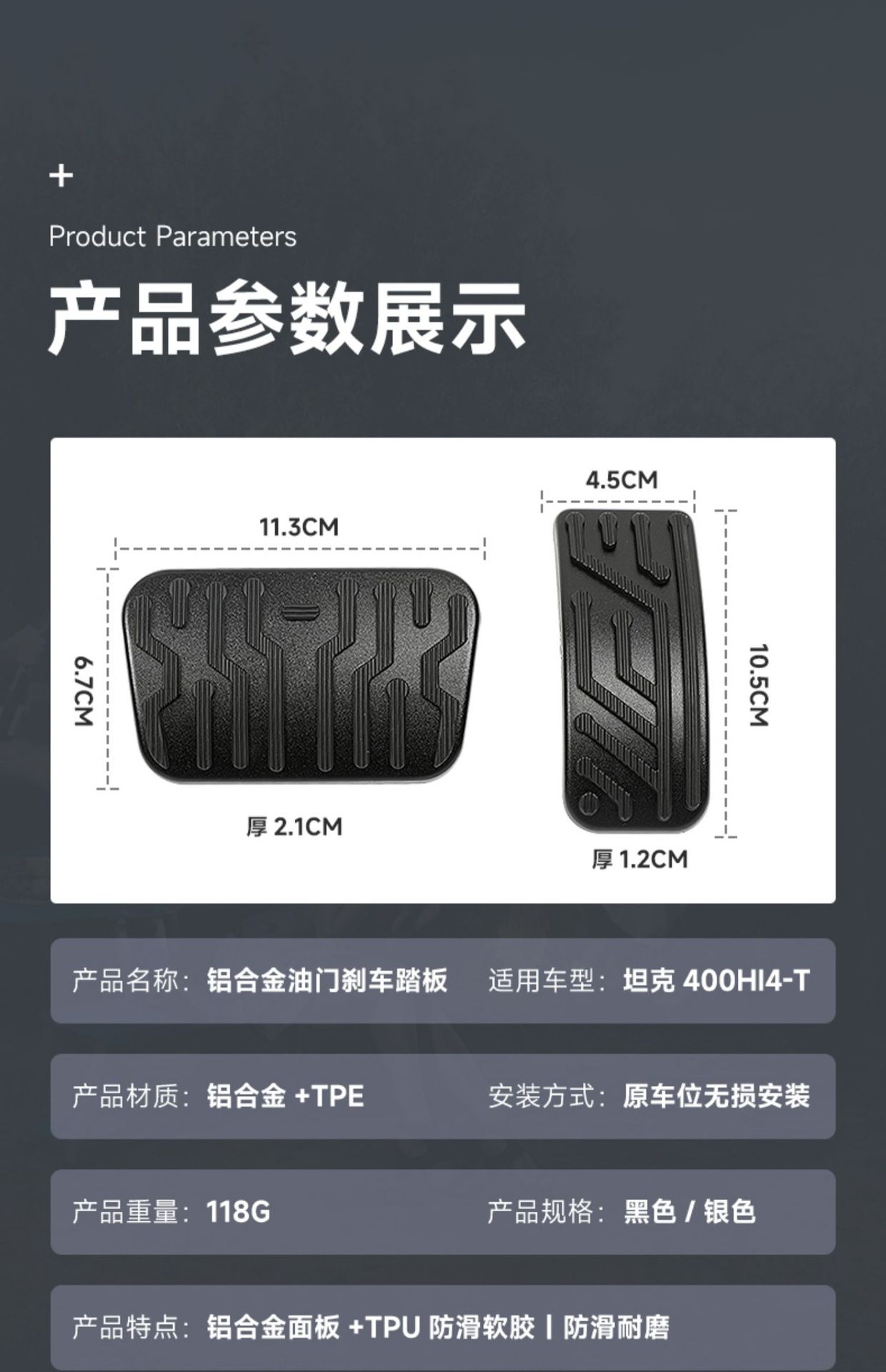Be the first to review “Anti-Slip Brake and Gas Pedal Covers Aluminum Alloy Interior Foot Pedals for Tank 400 Hi4-T” Cancel reply