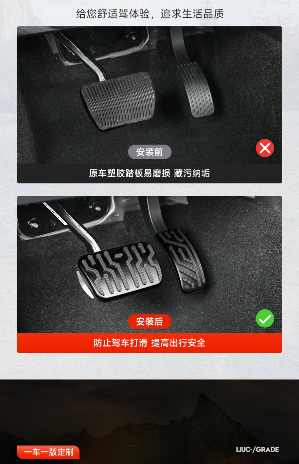 Upgrade your driving experience with these premium anti-slip aluminum brake and gas pedal covers. Designed for durability and safety with a sleek interior look.