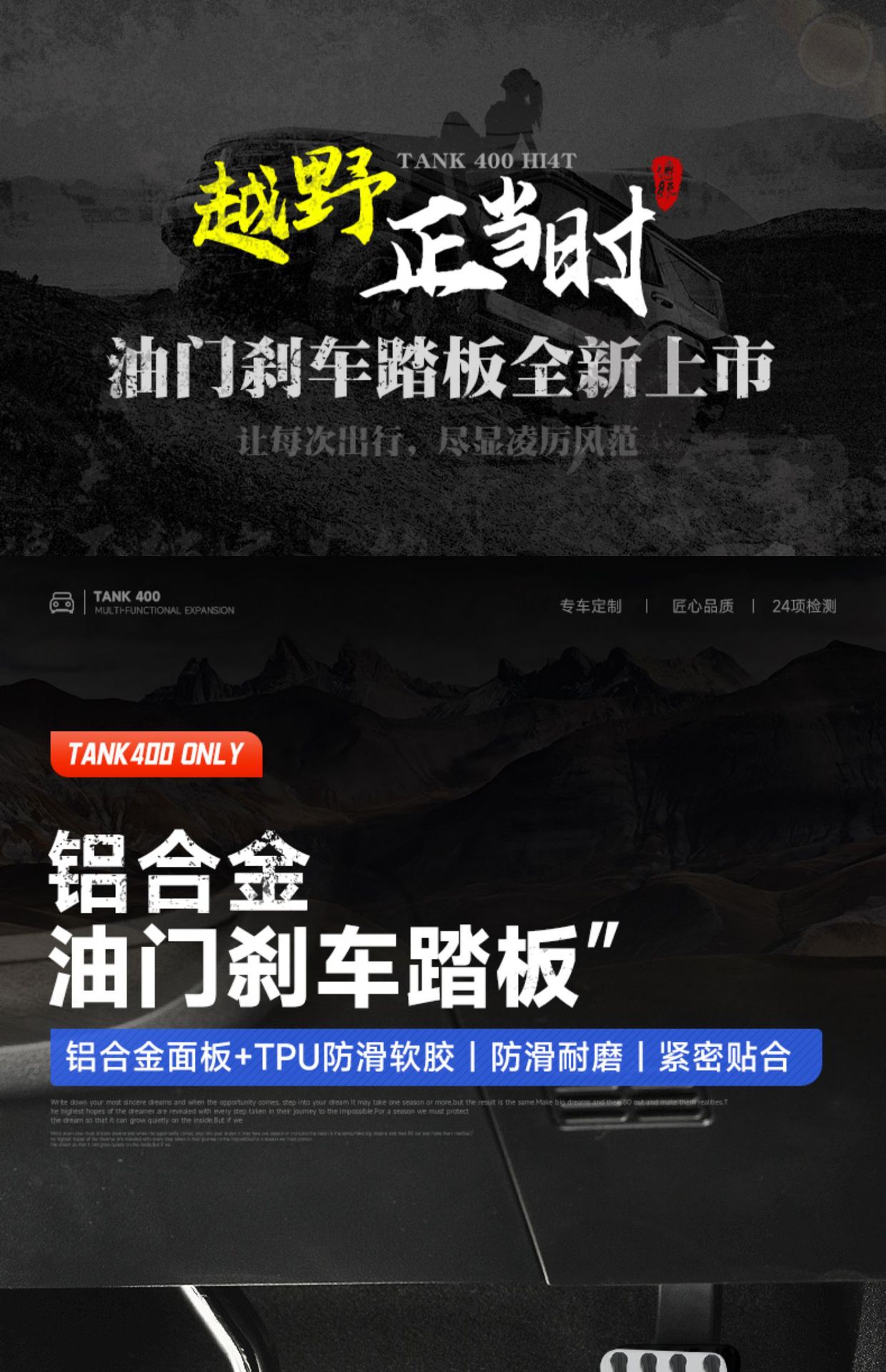 Anti-Slip Brake and Gas Pedal Covers Aluminum Alloy Interior Foot Pedals for Tank 400 Hi4-T