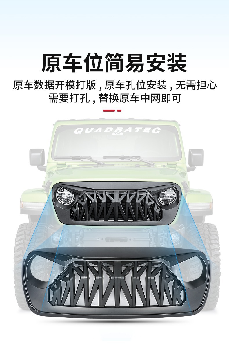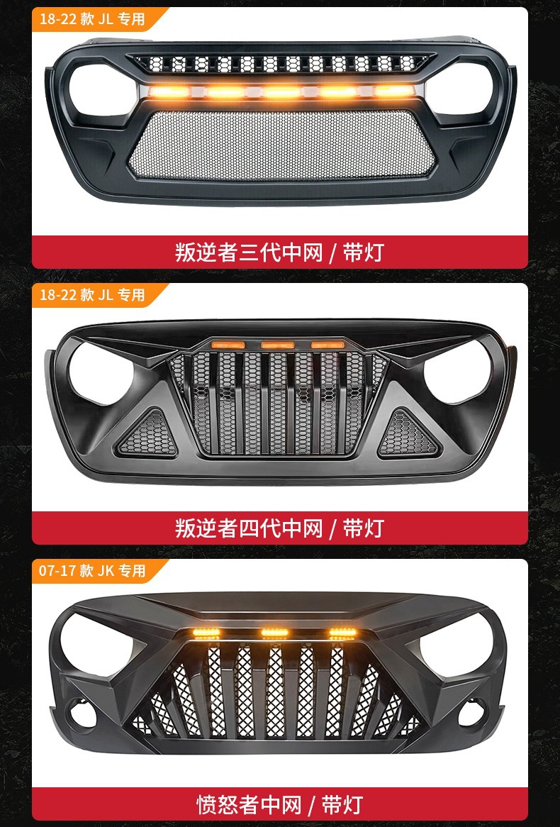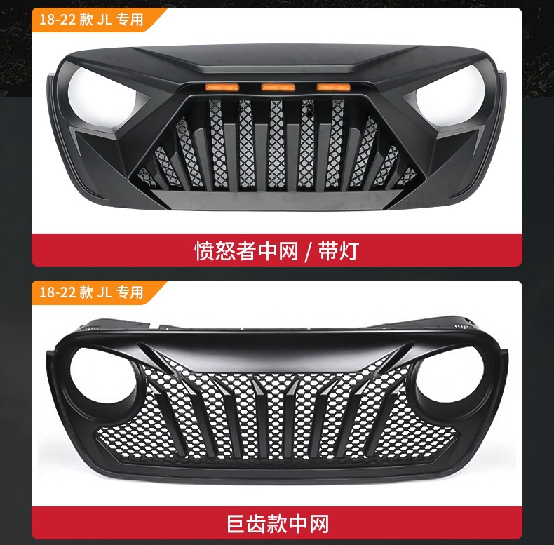 Applicable 07-23 Wrangler Rebel China Net Gladiator Front Face Modification Angry China Net with Light Assembly