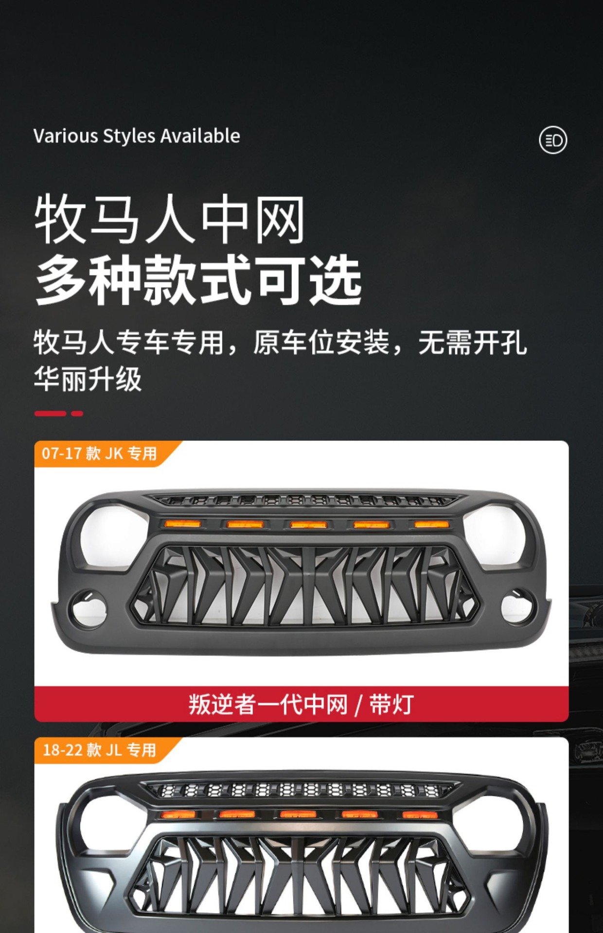 Be the first to review “Applicable 07-23 Wrangler Rebel China Net Gladiator Front Face Modification Angry China Net with Light Assembly” Cancel reply