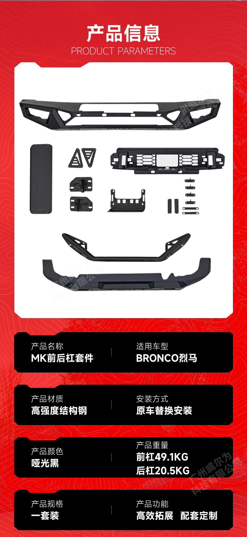Applicable Ford Martyr MK Conqueror Front and Rear Bars Modified Off-road Bronco Competitive Bars Front Bumper Spotlights