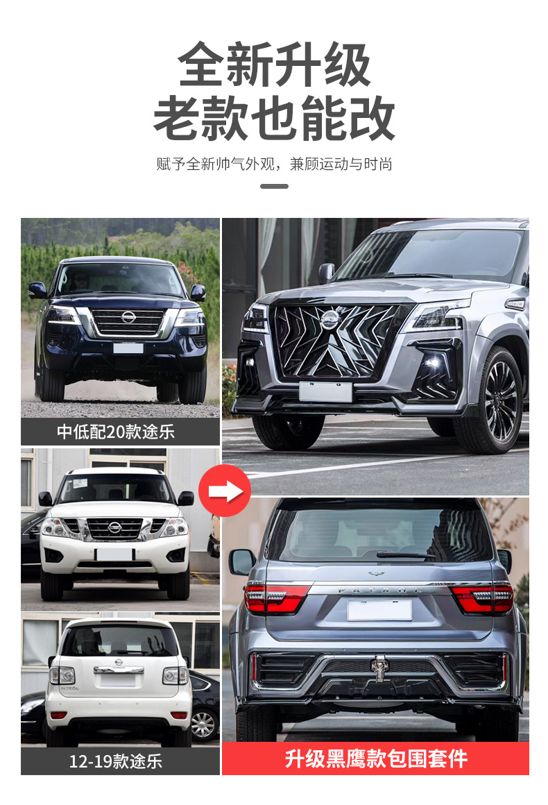 Applicable to 12-21 Patrol Y62 Black Hawk Edition Modified Front and Rear Large Encircled Bumper Upgrade Old Modified New Kit