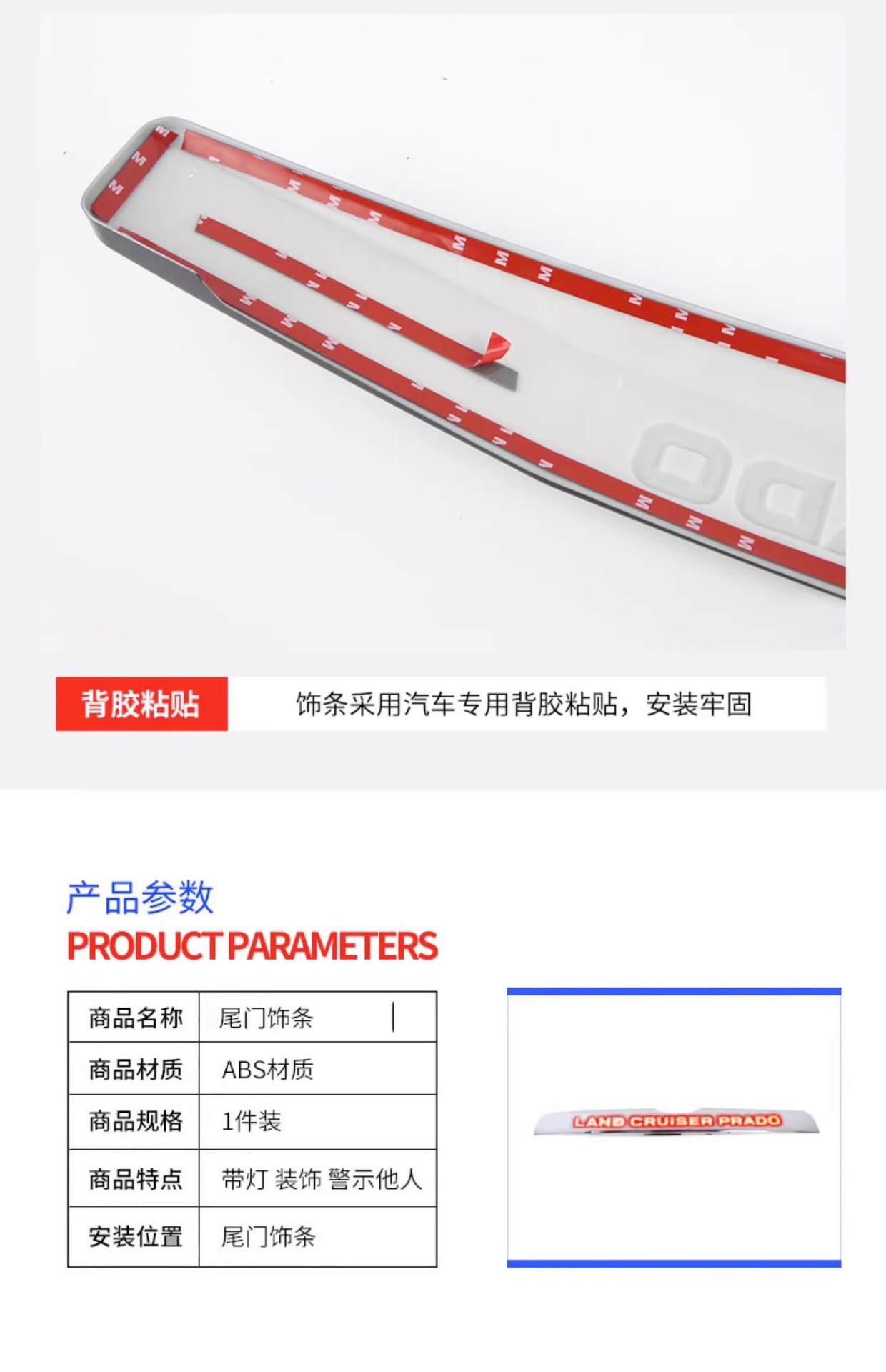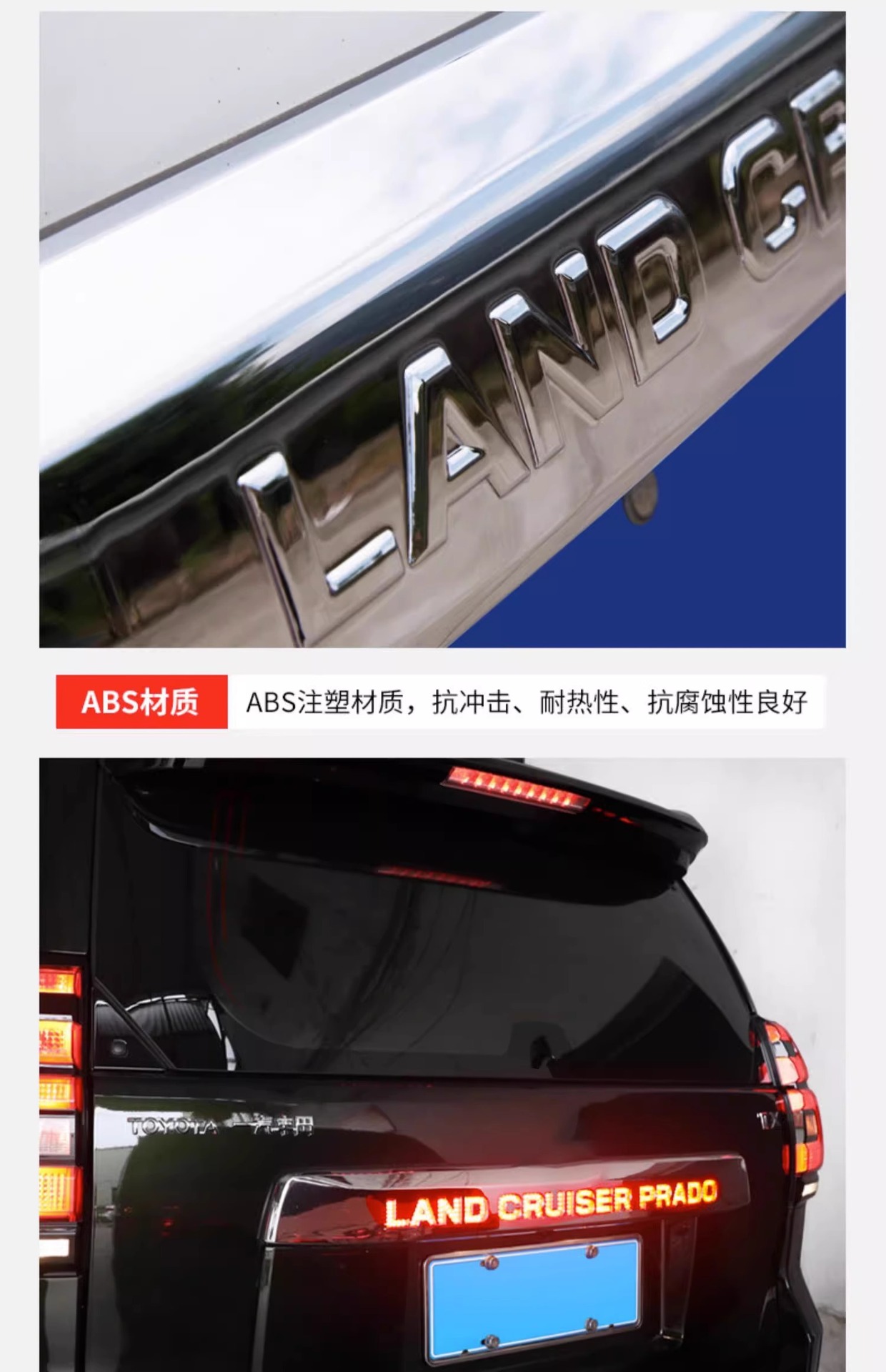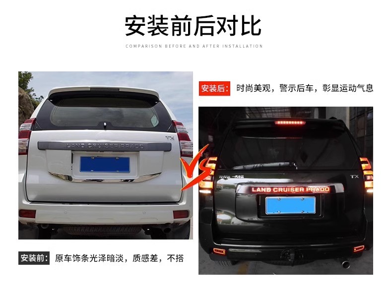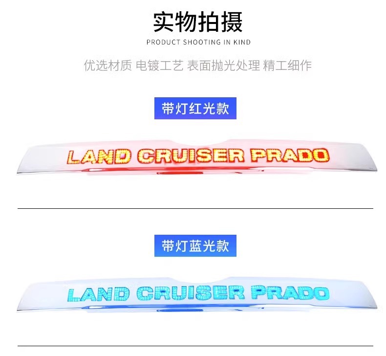 Applicable to 14-20 Prado tailgate rear trim strip with light medium gauge domineering carbon fiber trunk brake light bright strip