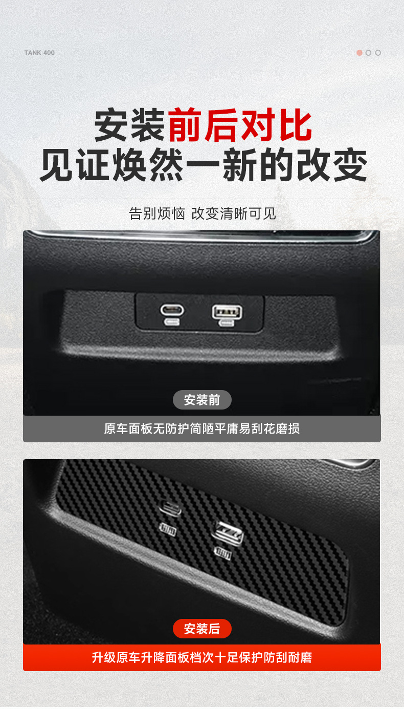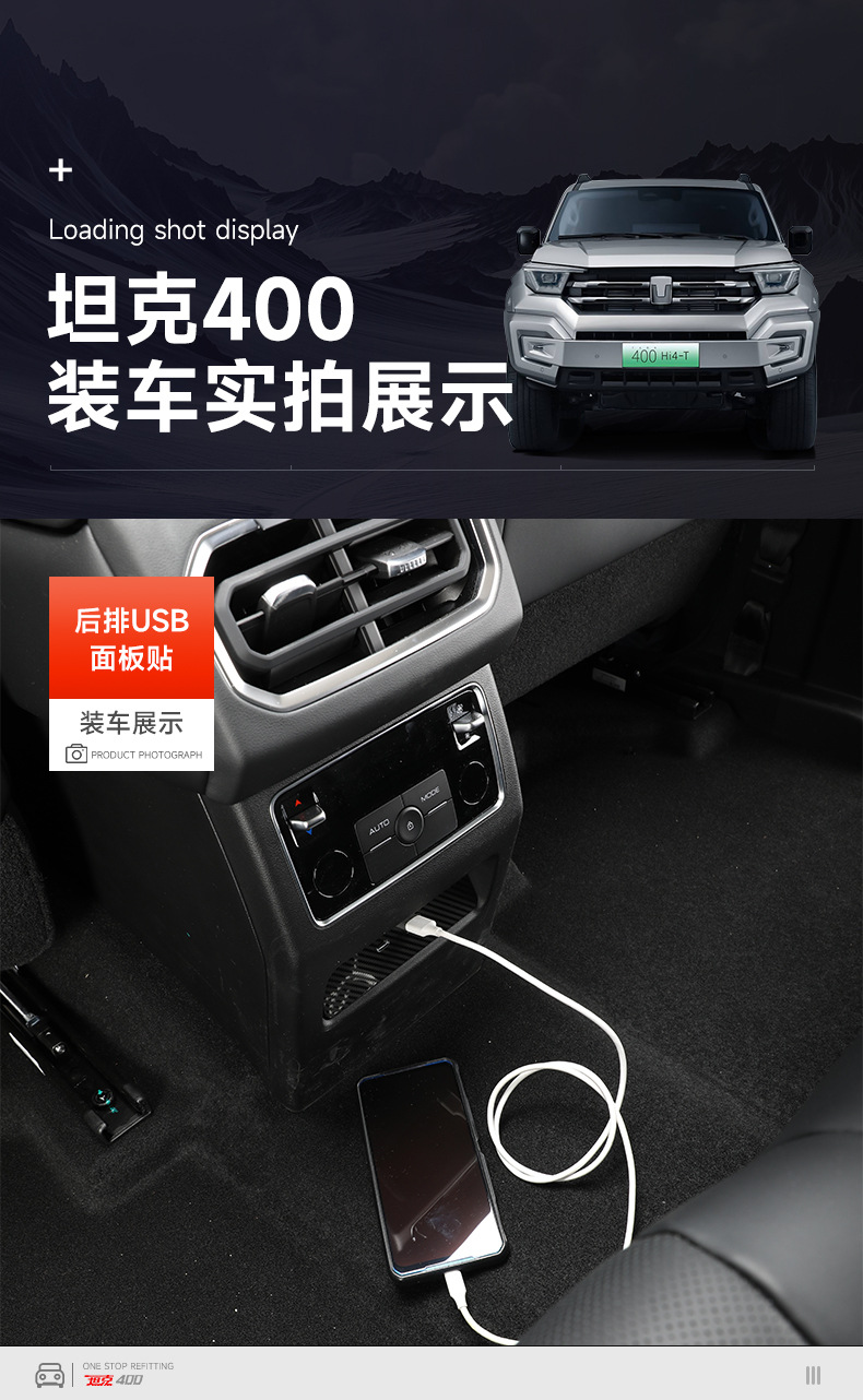 Applicable to tank 400hi4t rear USB charging panel patch modification protective cover two-row panel decoration supplies