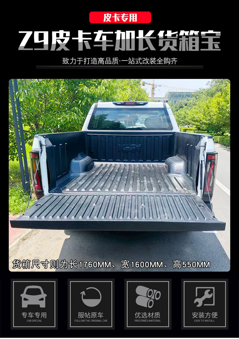 - Customized fitment for Zhengzhou Dongfeng Z9 New Energy Pickup extended cargo beds providing edge-to-edge protection.