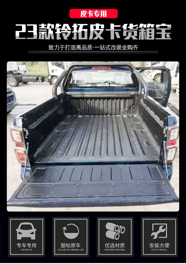 Black Plastic Truck Bed Liner Cargo Mat for 2023 Isuzu D-MAX Flatbed Extended Box Pickup