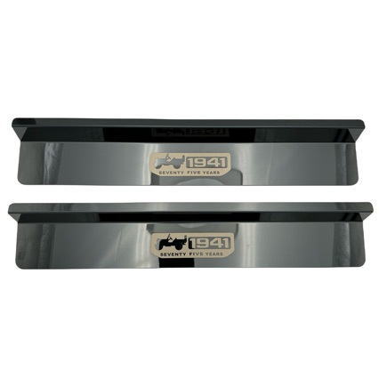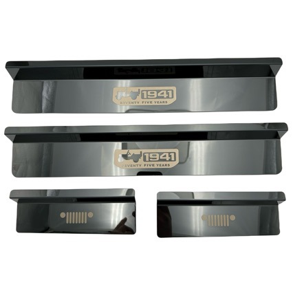 Protect your 2018-2024 Jeep Wrangler JL or Gladiator JT with these premium 304 Stainless Steel door sill guards. Featuring a black crystal finish and 1941 heritage logos.