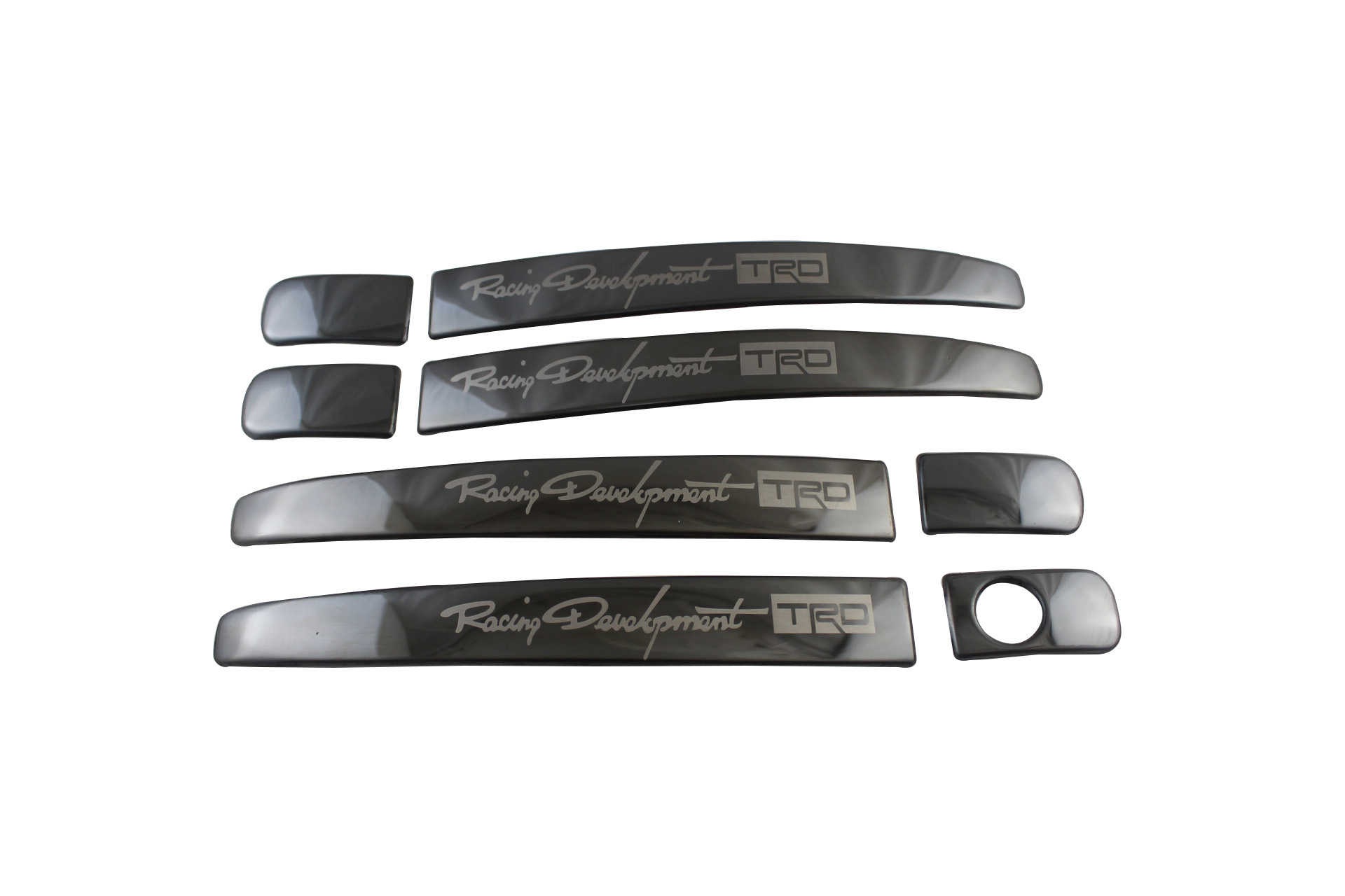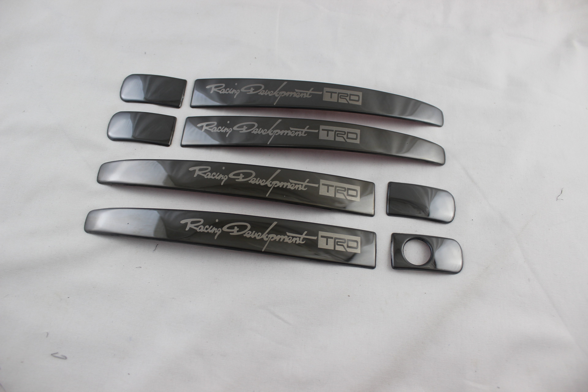 Tags: automotive exterior accessories, black handle garnish, car door decoration, door handle cover, exterior car trim, stainless steel handle protector