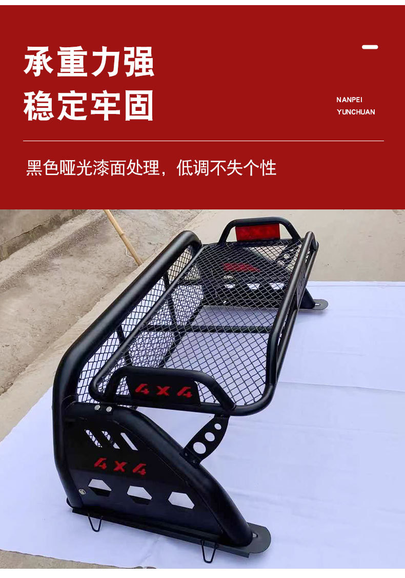 - Designed for bolting onto the truck bed rails to secure cargo and support mounting of additional lighting accessories.