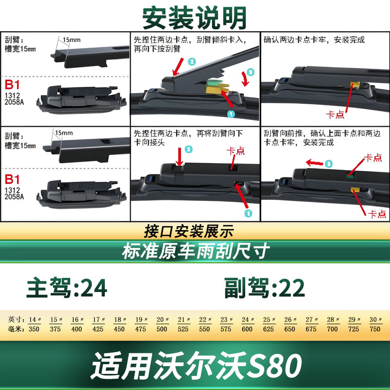 Upgrade your Volvo S80/L with high-quality boneless quiet rubber wiper blades. Designed for smooth, streak-free visibility and easy installation in all seasons.