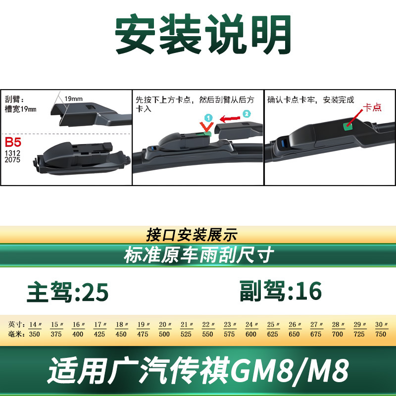 Upgrade your driving safety with high-performance boneless silent wiper blades for GAC Trumpchi GM8/M8. Durable rubber construction ensures clear visibility.