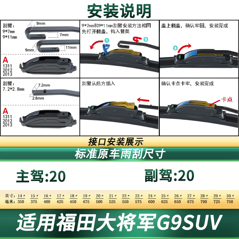 Boneless Silent Rubber Wiper Blades for Foton Mars G9 SUV High-Performance Front Windshield Wipers