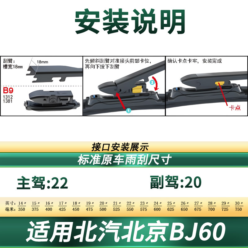 Upgrade your BAIC Beijing BJ60 with these premium boneless silent rubber wiper blades. Designed for all-weather performance, durability, and streak-free clarity.