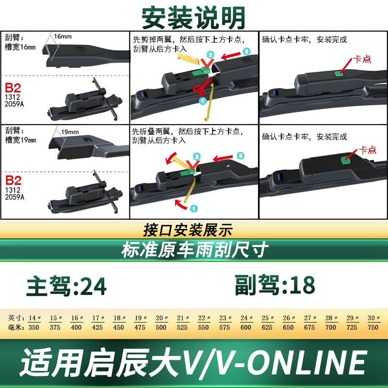 Boneless Silent Rubber Wiper Blades Front Windshield Accessory for Venucia Big V/Pro/DD-i