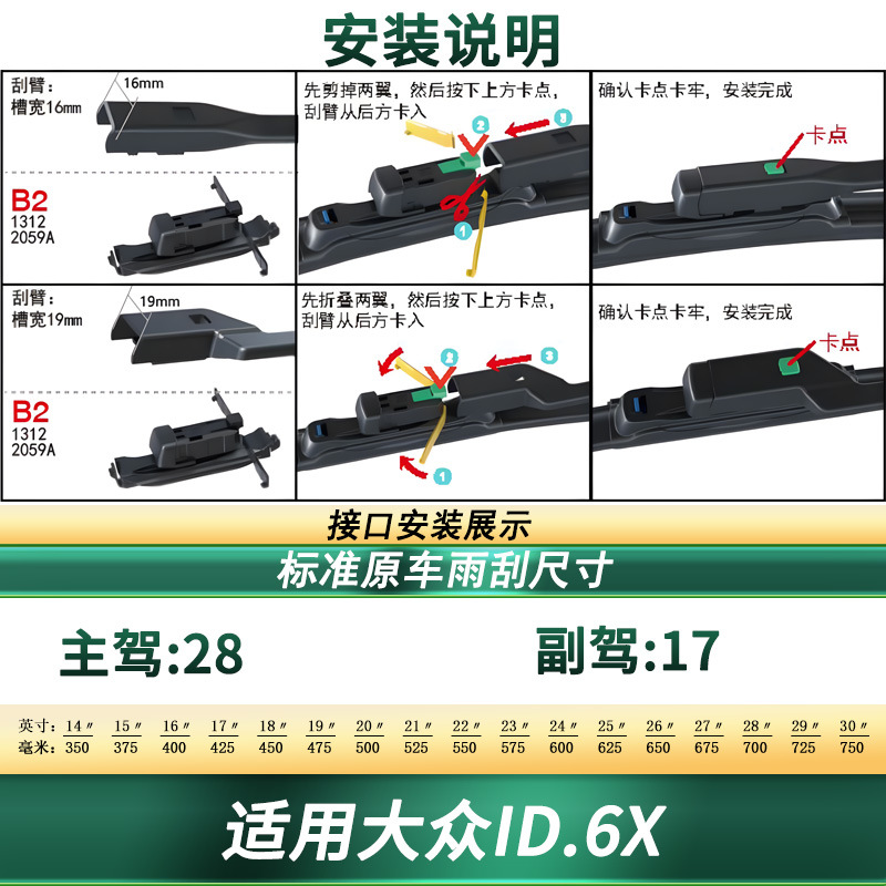Tags: automotive window cleaning, boneless wiper blades, frameless wipers, front windshield blades, silent wiper refills, VW ID.6X accessories, windshield wipers