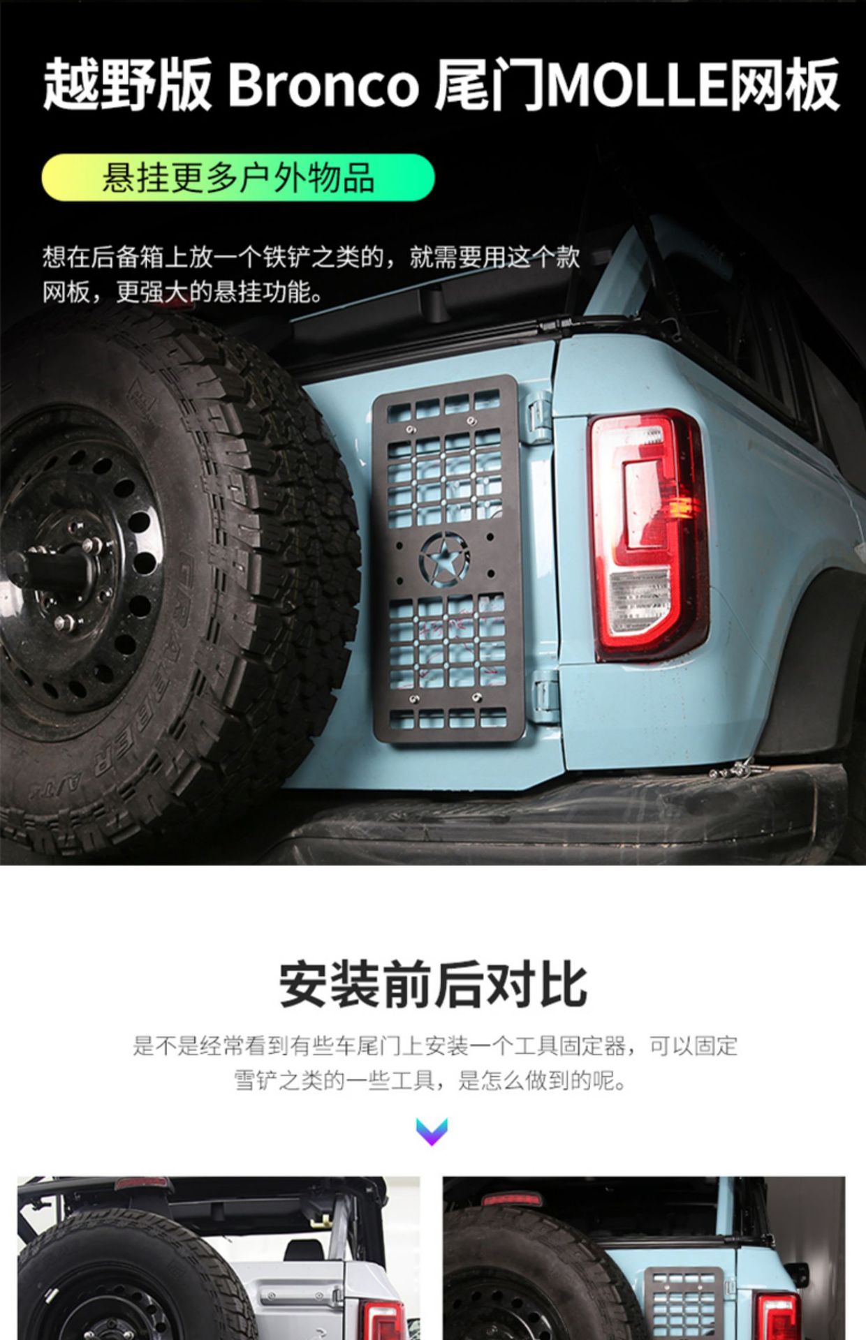 Bronco Modified Tailgate Integrated Exterior Trims Panel for Martyr Horse Tailgate Expansion Mesh Panel