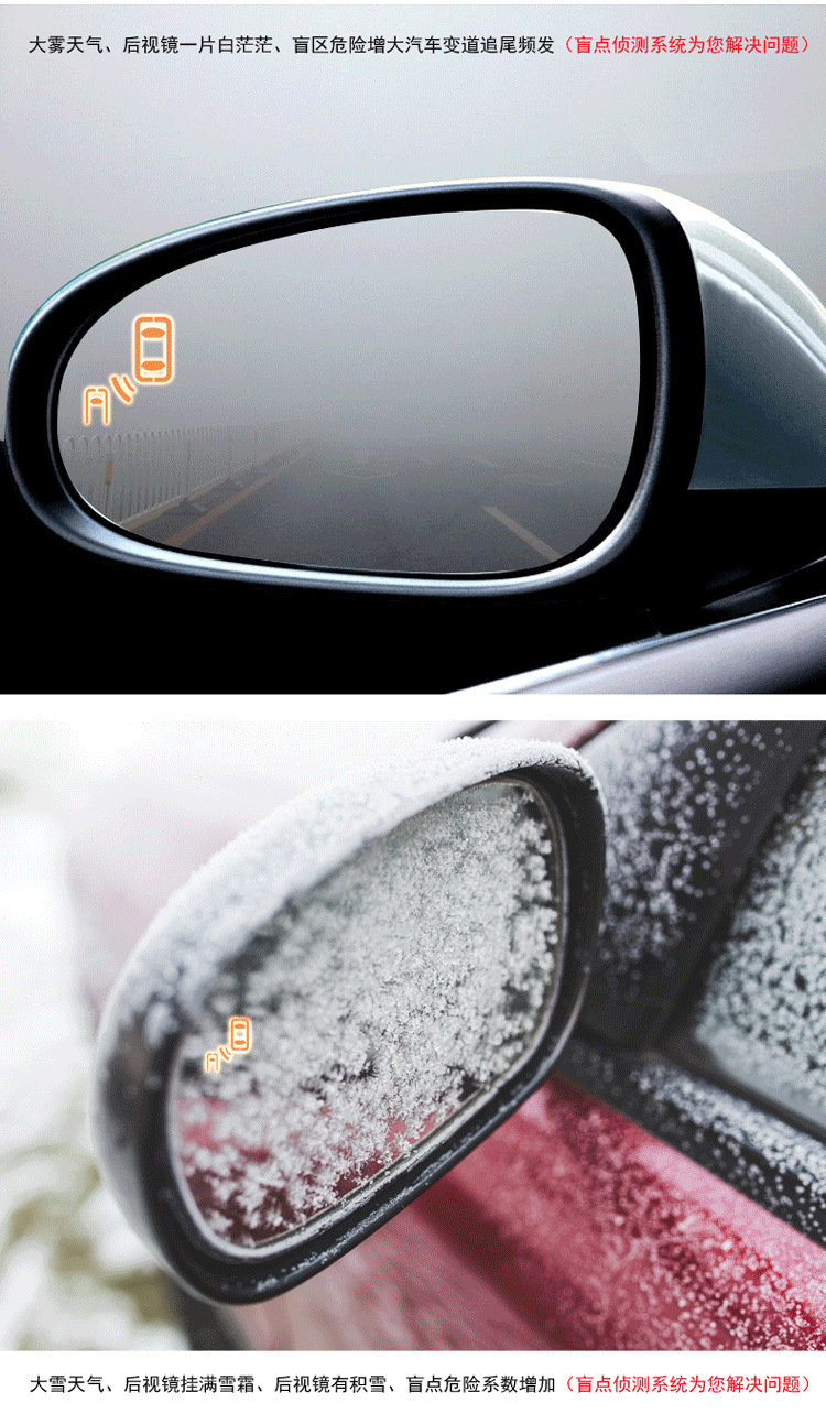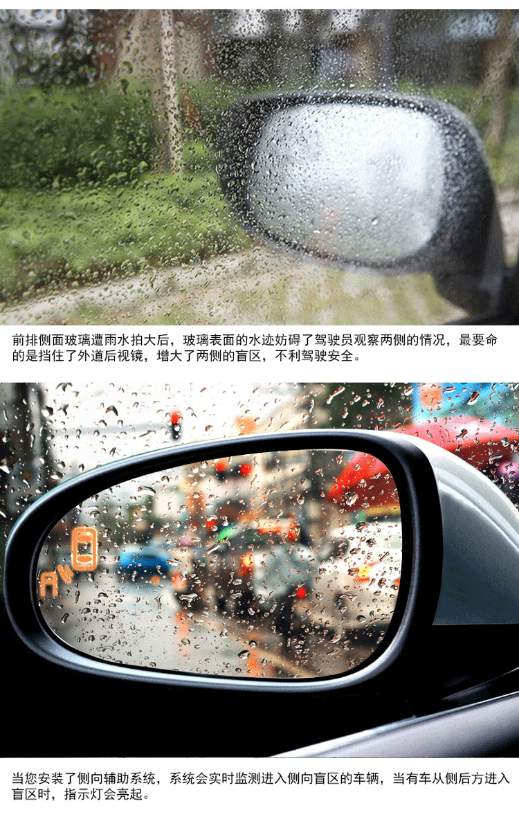 - Advanced BSD and BSM microwave radar technology monitors blind spots for enhanced road safety during lane changes.