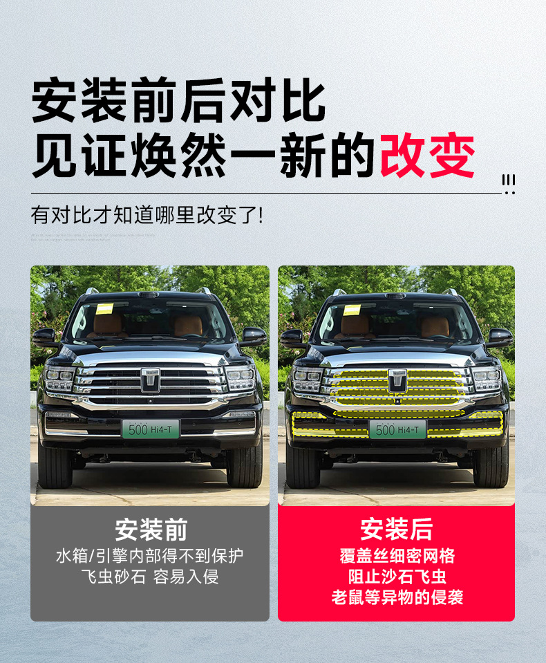 Buckle-Design Front Grille Mesh Insect Screen and Radiator Debris Protection Filter for Tank 500 Hi4-T
