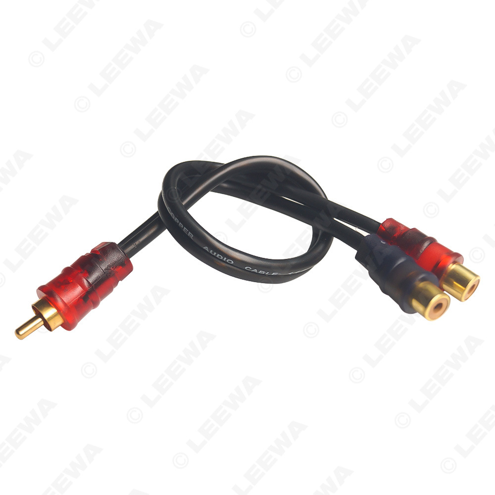 - High-fidelity signal transfer featuring 1 Male to 2 Female RCA connectors for seamless car audio system integration.