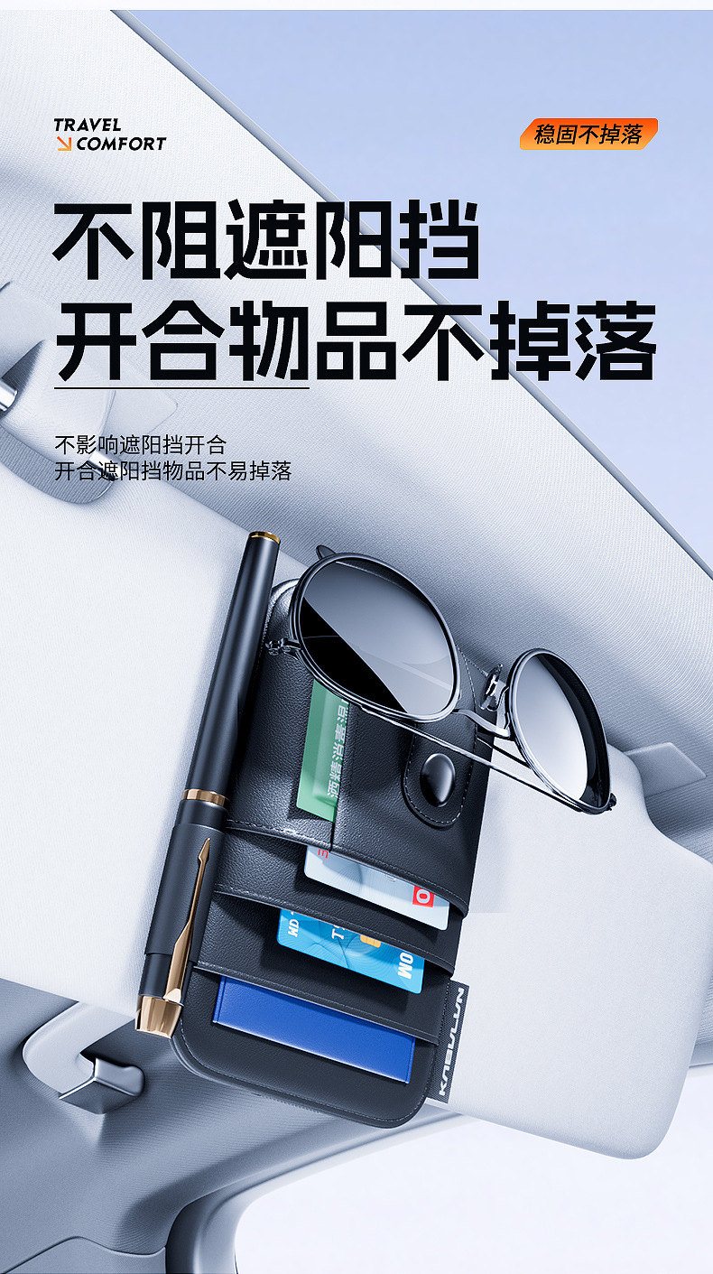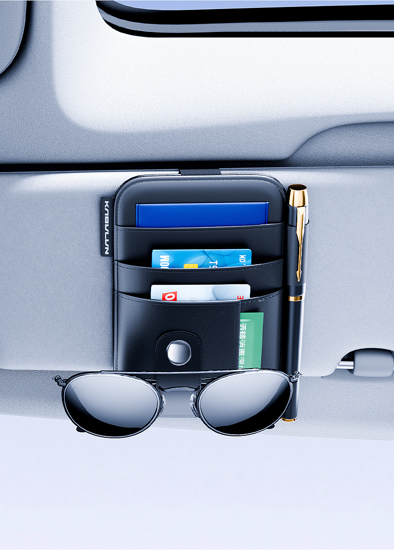 Tags: auto visor pouch, car glass clip, interior trim accessory, sunvisor storage sleeve, vehicle document organizer, visor card holder