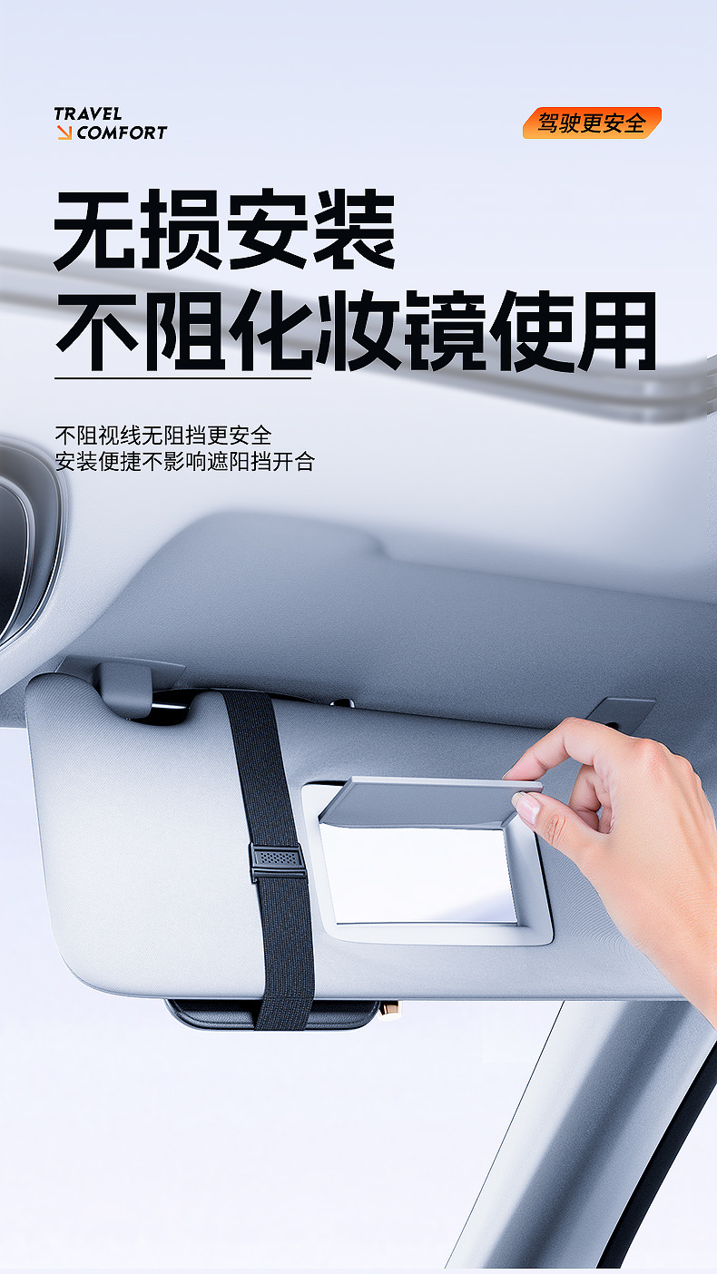 - Universal elastic strap design ensures a firm and easy installation on most standard car, truck, and SUV sun visors without tools.