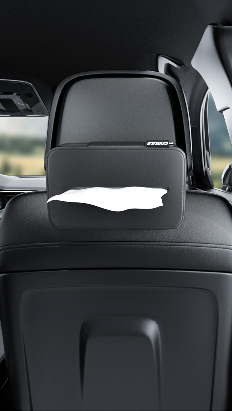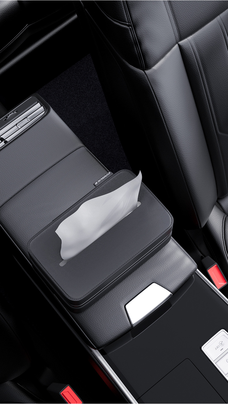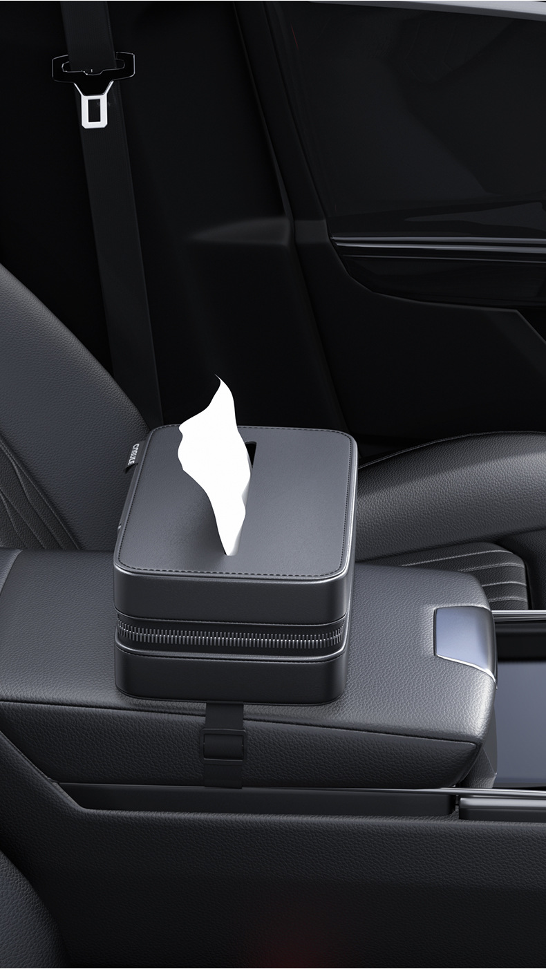 Tags: automotive tissue box, car interior organizer, leather tissue case, seat back paper dispenser, sun visor napkin holder, vehicle accessories