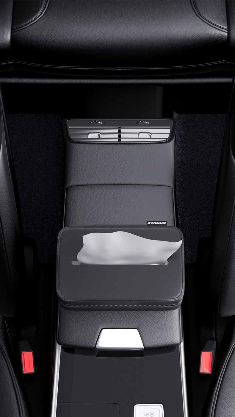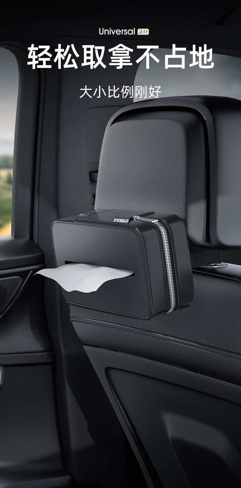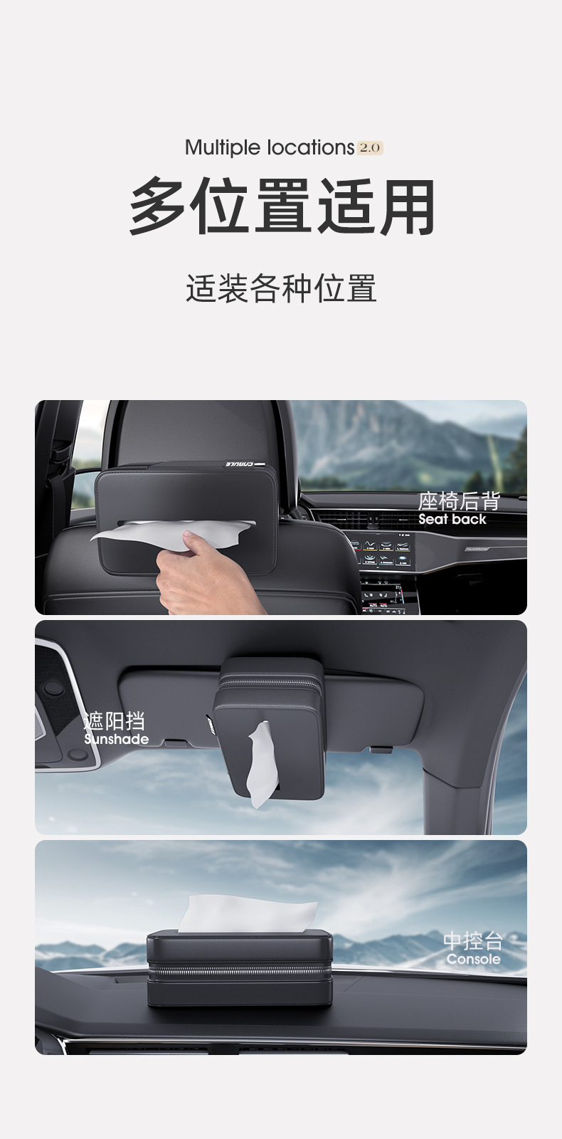 Tags: automotive tissue box, car interior organizer, leather tissue case, seat back paper dispenser, sun visor napkin holder, vehicle accessories