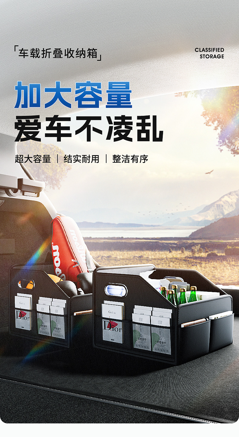 Tags: automotive storage, car storage box, cargo management, folding organizer, trunk organizer, trunk tidy, vehicle bin