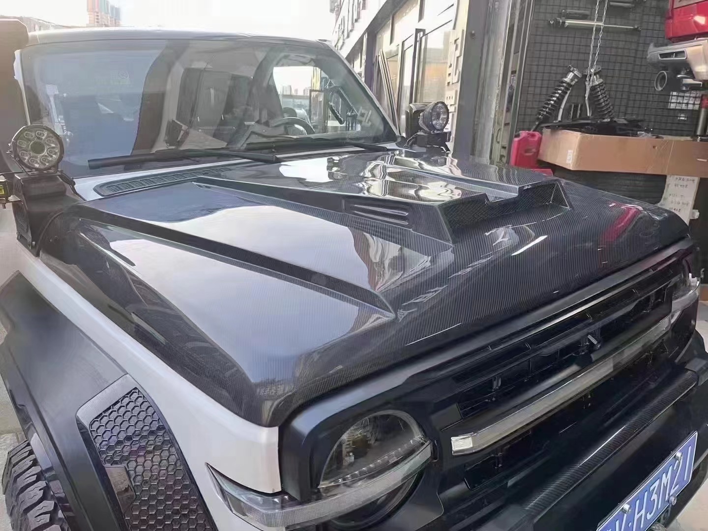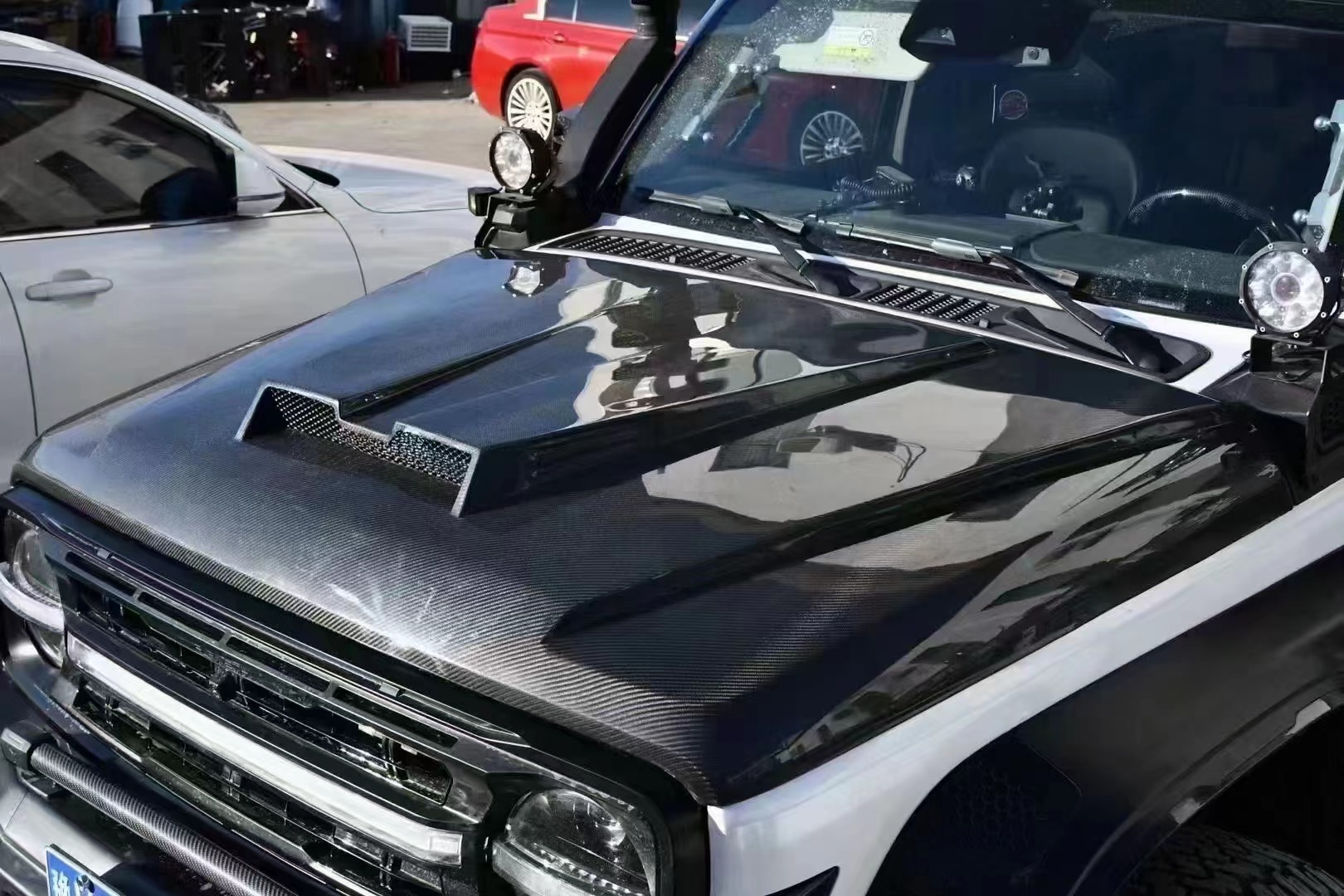 Tags: Brabus style kit, car bonnet cover, carbon fiber hood, engine cover vent, exterior car tuning, lightweight auto body parts, Tank 300 modified
